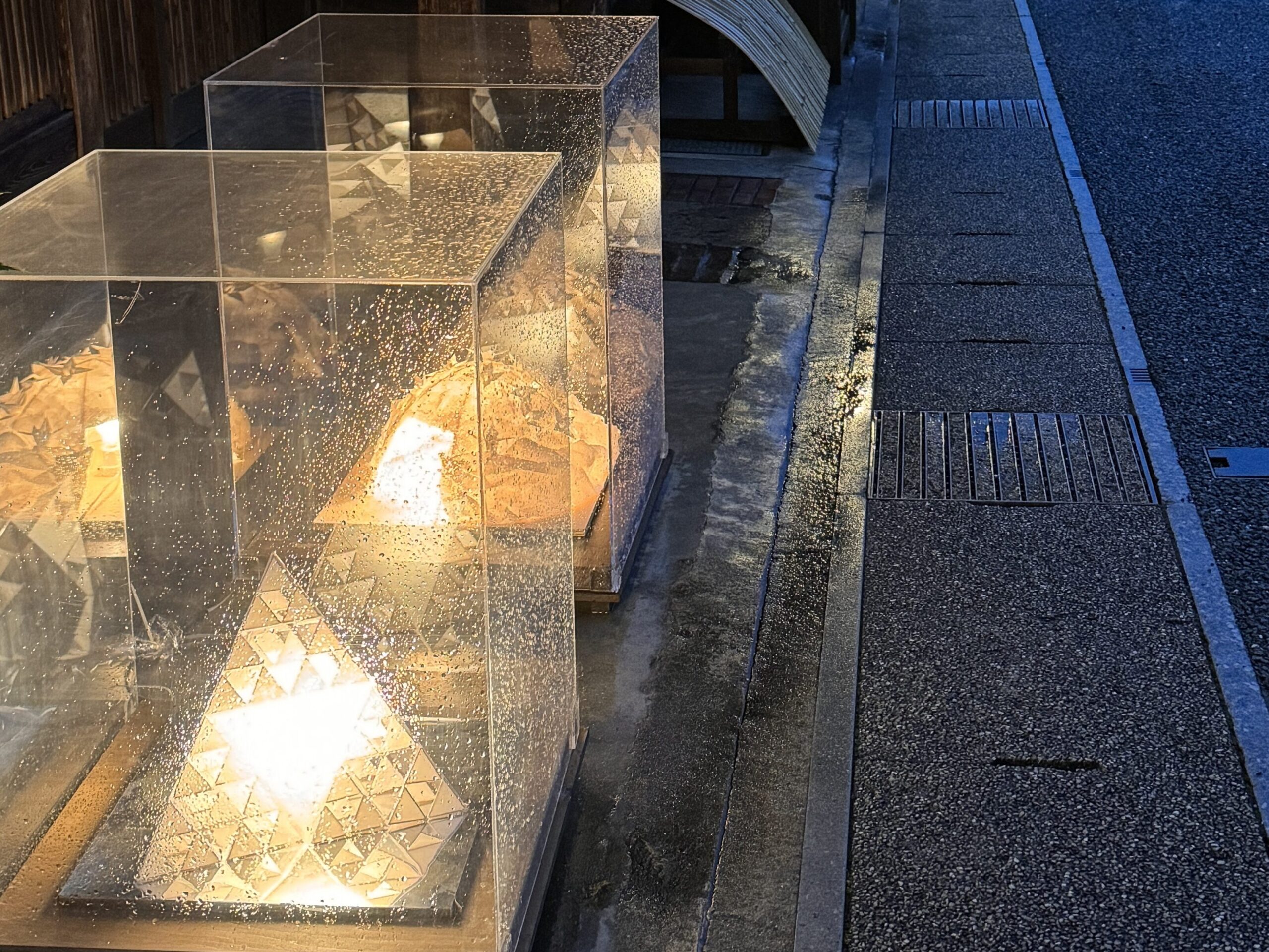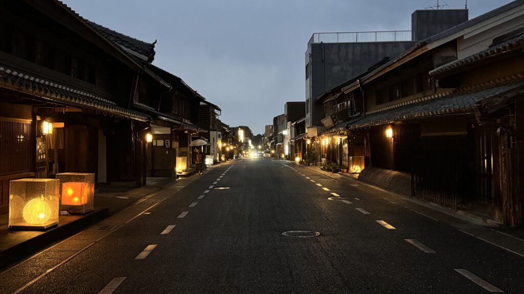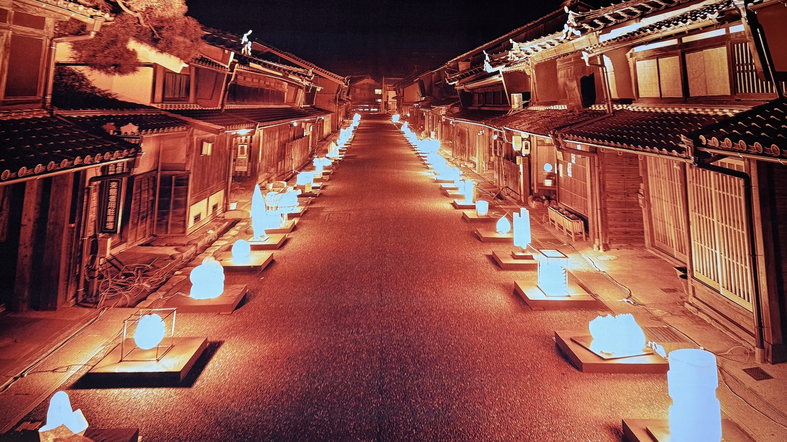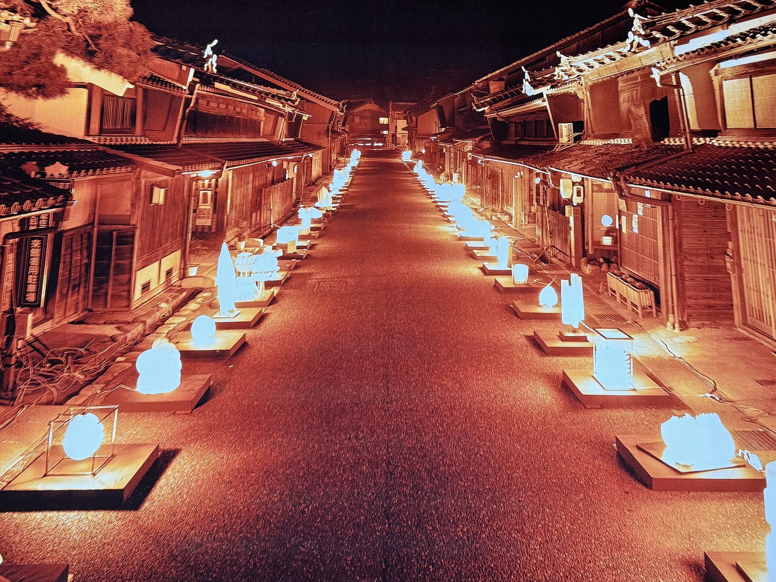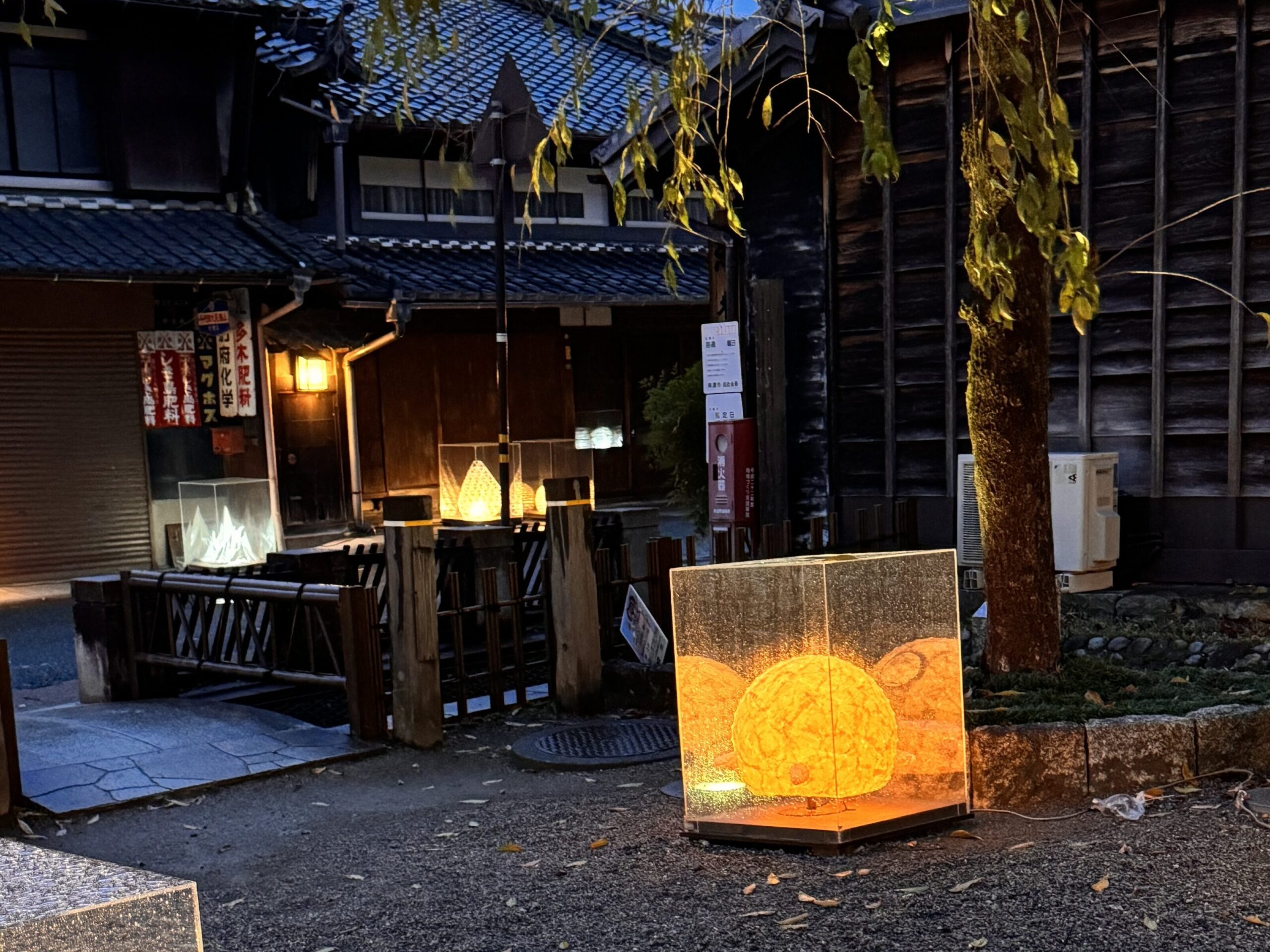 古い町並みのあちこちに、地元の職人や学生たちが制作した灯りが並び、