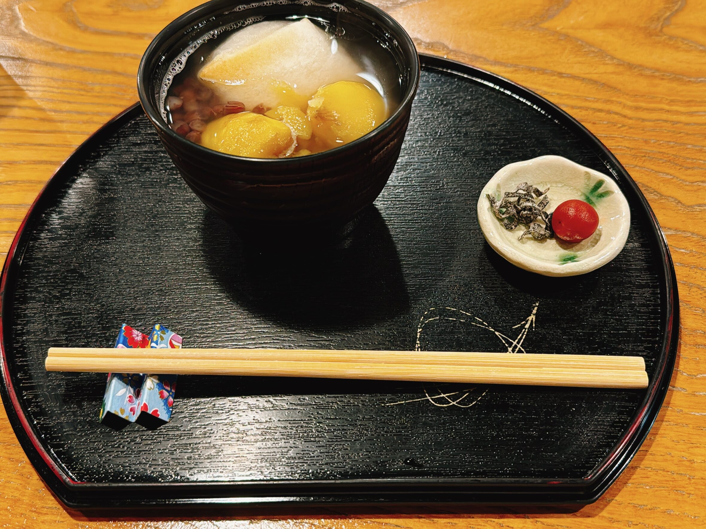 焼いたお餅が入っており、懐かしさを感じる味だった。